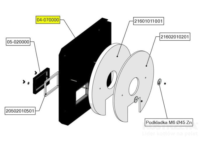 Zespół drzwiczek tył - do kotła Mini Bio Luxury 20 kW v02