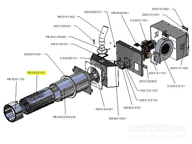 Zespół rusztu palnika PB 200kW